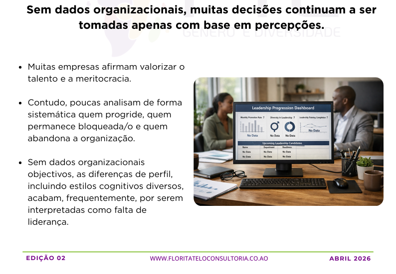 trabalho como problemas individuais. Profissionais com elevada capacidade técnica, mas com dificuldades sociais ou estilos de comunicação diferentes, são muitas vezes avaliadas/os da mesma forma: “não têm perfil de liderança”. Essa conclusão surge rapidamente, quase sempre sem qualquer análise estruturada.